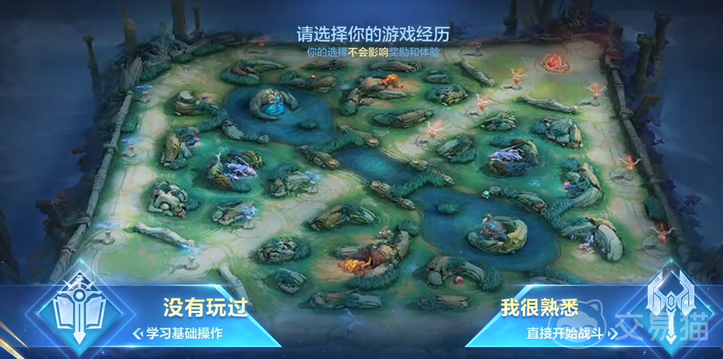 这次的教学基本上是完全仿照正常玩法来进行的,但是咱们不管是敌人还是队友都是机器。在一开始的界面我们选择好角色,然后便会进入到游戏之中。进入游戏之中,咱们一共有3条路线,5个人。一般正常的打法是上路一人,上路又被称之为经验路,这条路的敌我双方的攻击是最激烈的。一般来说上路的角色都是单挑或者机动能力较强的战士角色,但有时一些对此路非常精通的玩家也会选择一些自己较为擅长的输出角色来进入到此条道路上。