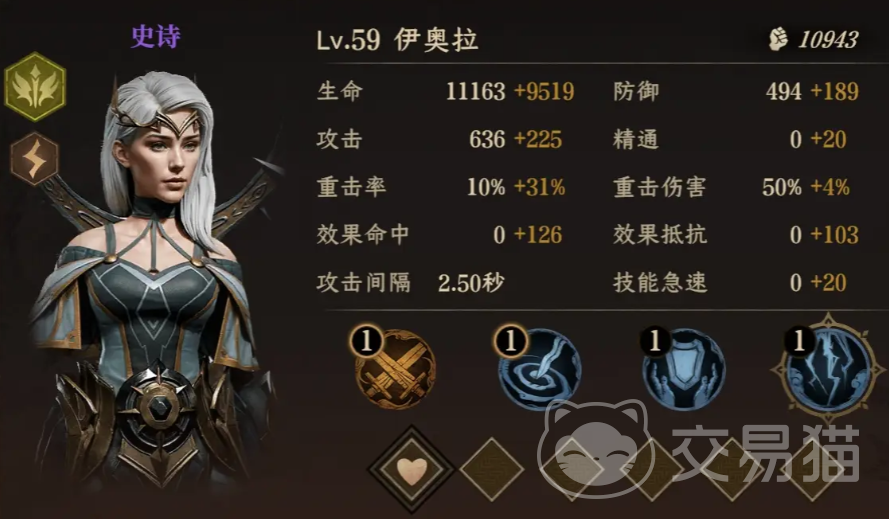 她的被动能在对沉默目标进行攻击时,有40%概率把沉默改成眩晕,她的战技会向敌人发射两个闪电球,每一个形成200%攻击的闪电伤害并且有50%几率施加5秒沉默,她的大招会召唤闪电轰击目标区域3次,每一次都会对范围内敌人形成230%攻击的闪电伤害并且一半概率施加沉默,75%概率施加2级攻击降低10秒。