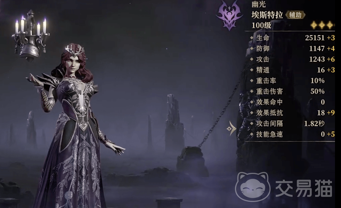 他的被动能在对敌人施加减益时,有30%几率随机移除一位队友身上的1个减益,他的战技能对范围内敌人形成320%攻击的光耀伤害,并且有75%几率降低其25%的攻击和施加致盲,让其普攻无法命中目标,他的威能技会发动3次攻击,每一次都会对范围内敌人形成一定输出值,并且有30%改了施加5秒眩晕。
