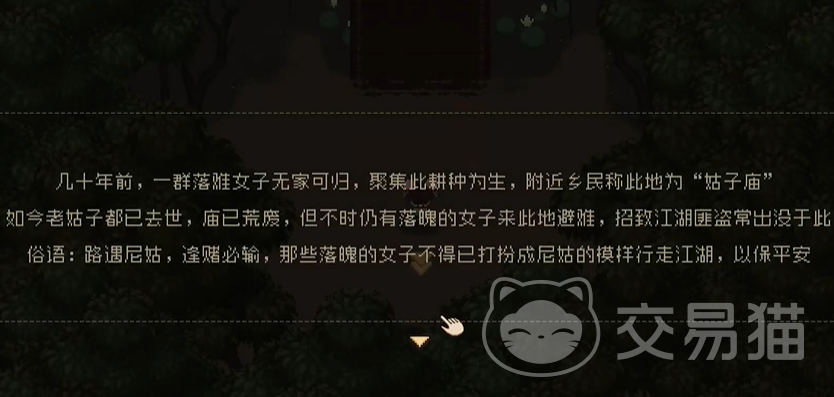 第二个就是江湖路线,玩家在江湖游历过程中,来到姑子庙这个场景,在这里会触发一段剧情,看到麻姑身处困境,面临一些歹人的骚扰或是危险处境,面对麻姑的困境,游戏会给出几个不同的对话选项,玩家务必谨慎选择,只有挑选了代表正义、善良且愿意救助她的选项,才能成功救下麻姑,同时自身的道德值也会因此提升,这一步为后续麻姑的加入奠定基础,成功救下麻姑后会对玩家心怀感激,并告知玩家一些后续的线索或请求。