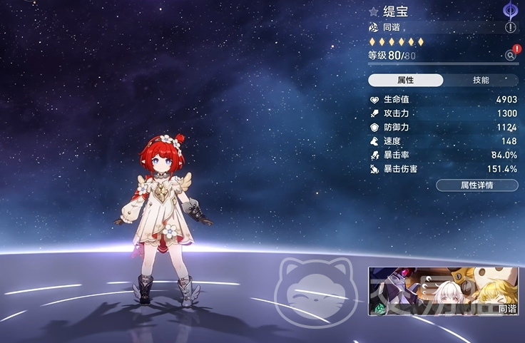 缇宝的技能种类多样,普攻・一百层的小火箭技能可以指定敌方单体造成等同于缇宝30%生命上限的量子属性伤害,对敌人造成等同于缇宝15%生命上限的量子属性伤害,可在攻击敌人时对周围的其他敌人造成一定伤害,增强清怪能力,战技・礼物都去哪儿了使用后获得神启,可以持续3回合,当获得神启增幅时,己方全体队友全属性抗性穿透提高24%,能增强队伍输出能力。