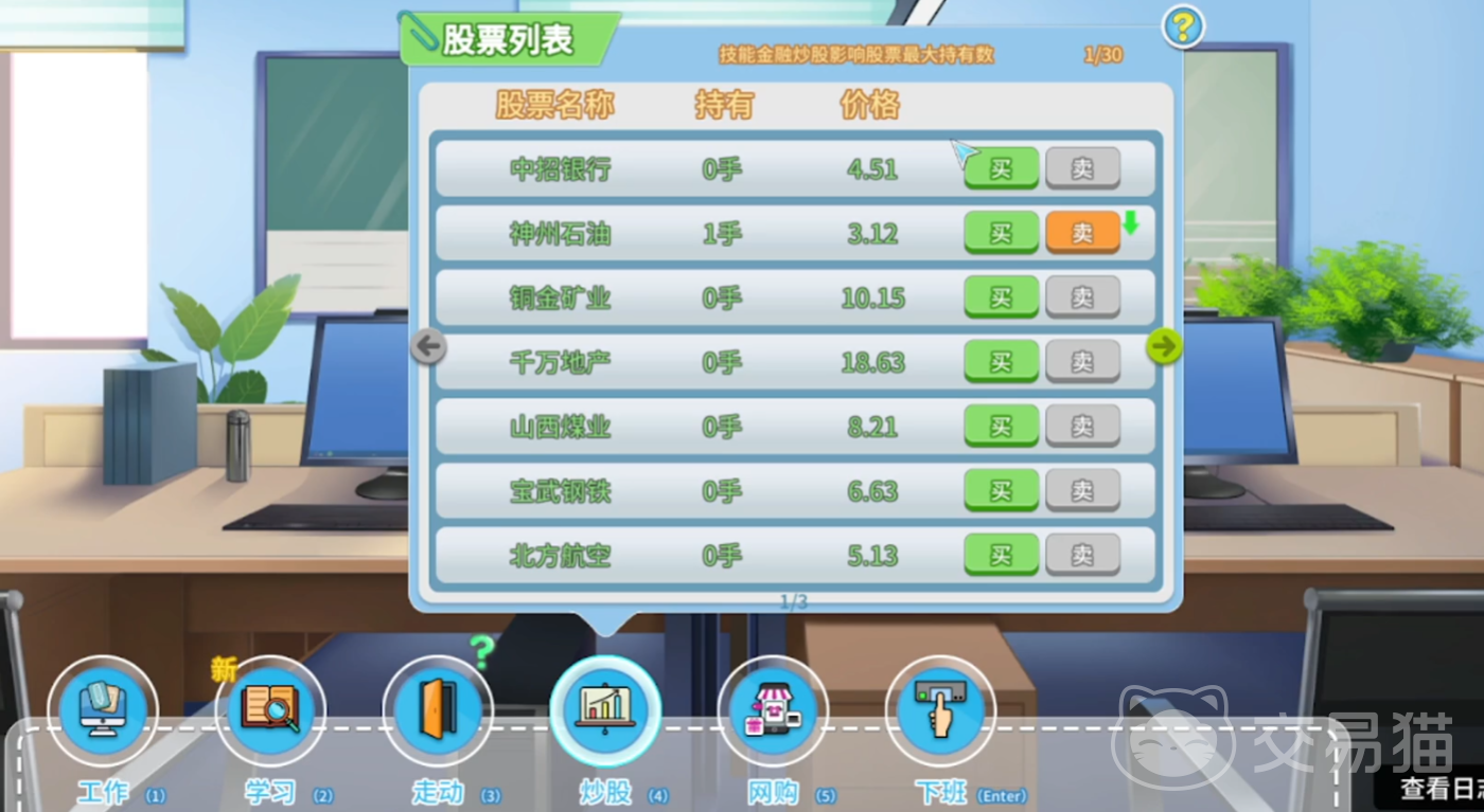 炒股不仅仅依赖资金,思维值的提升对股市投资有着至关重要的作用。思维值决定了玩家在股市中的决策效率和分析能力。高思维值可以帮助玩家更好地分析股票走势,做出更为精准的判断。因此,在股市操作之前,建议玩家首先提升思维值。通过完成“思维”任务,玩家可以提升这一属性,进而提高对股市行情的把握能力。尤其是当股市出现较大波动时,良好的思维值能帮助玩家避免盲目跟风和冲动决策,从而在复杂多变的市场中保持清醒。