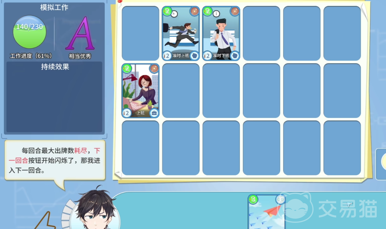 第二个推荐使用的卡牌是放飞思路,这张卡牌是游戏内进行报告填写效率最高的一张卡牌,如果玩家在当天并未抽到这一张卡牌,也可以使用思辨能力提高的卡牌,来保证玩家能够将报告在下班节点前完成。