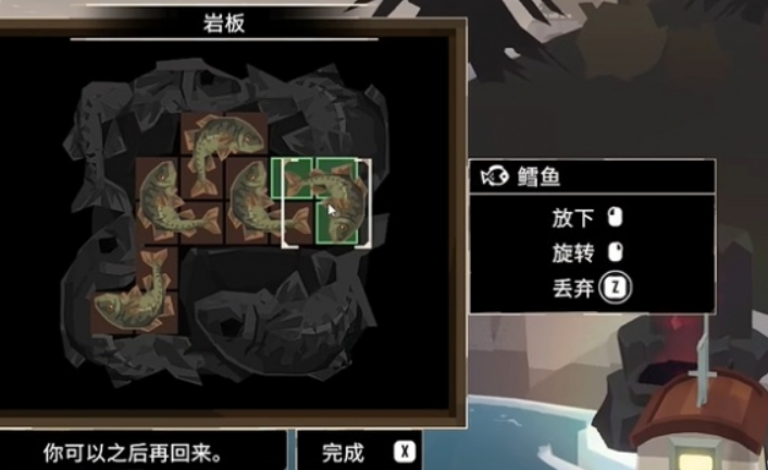 游戏里总共有4个石碑,每一个石碑都会有对应的任务要求,完成这些要求之后就能获得相应的奖励,首先第一个石碑在大罗马岛,石碑会要求玩家在有限的空位里放置5条鳕鱼,想完成这个任务,首先需要让自己的背包里有足够的鳕鱼,可以先在近海区域捕捞,多试几次就能轻松捕捞到5条,有了这5条鱼之后就可以在石碑上不断调整位置,这些鳕鱼会占用三个方格,并且呈一个直角形,玩家只需要点击鳕鱼就可以控制方向。