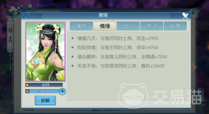 在体验游戏的时候,玩家如果组队,碧瑶其实能够跟其他的角色搭配,这样能够发挥较大的威力,如果玩家将碧瑶跟鬼厉同时上阵,这时候他的攻击性就会增强。其实碧瑶这个角色在情缘属性当中属于一大特色,简单来说就是玩家可以利用碧瑶这个角色,跟其他的角色建立情缘,这样的话,能够获得额外的属性加成。这里的情缘不仅仅是痴情,也有可能是父女情缘。