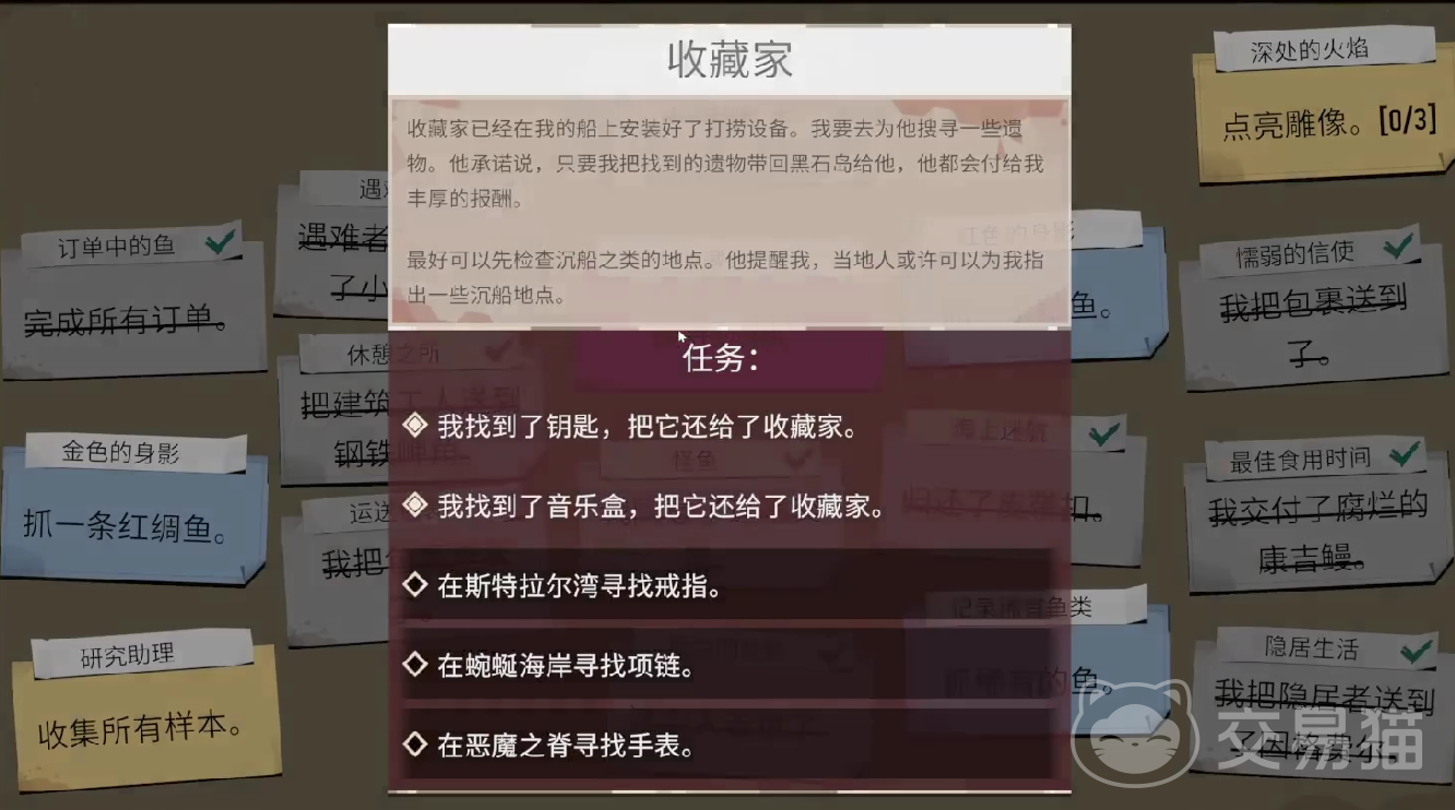 在这之后玩家直接前往到斯特拉尔湾的旧要塞,寻找到研究人员,研究人员就会告知玩家一枚神秘戒指的信息了,神秘戒指需要使用海沟装置将其捞走,在成功对话的研究人员后,研究人员会给予玩家一个全新的海沟装备,该装备可以制造大量的噪音,从而协助玩家捕捞戒指。