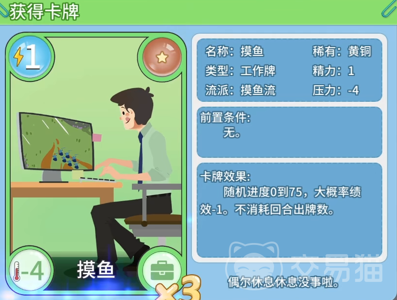 这些便是职场浮生记正式版的攻略介绍。前期关于人物的属性和点数的设置对于我们来说还是比较重要的。在设置完毕之后的几个获取卡牌的选项中尽量多选择一些卡牌的种类,这对于之后的对战是有优势的。