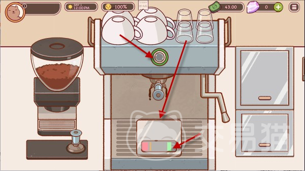 制作咖啡时,玩家需要把提前准备好到阿咖啡粉给拿出来,根据咖啡的配方将咖啡粉和其他的东西放入咖啡机里面,一杯可口的咖啡就制作完成了,制作好的咖啡需要玩家拿杯子给装好的,拿杯子时可别随便拿哦,需要询问顾客的意见,按照顾客的喜好,选择顾客喜欢的咖啡杯去装咖啡,把咖啡杯放到咖啡机的下面,点击开始装杯按钮,当按钮便变称绿色以后,咖啡就满了。
