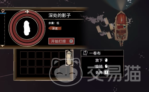 玩家在海域附近通过打捞可以发现深处的影子,而布料的影子样式小编在下图当中进行了展示。而且这类物资在海域周边的数量情况会直接在资料框当中进行显示的。当探测到该类物品后,可以直接点击小船上方的鱼钩标志进行拉取。除此之外,在钢铁岬角这里,玩家除了可以刷到布料,像木头、金属这些常用资源都可以成功获得,在捞完后直接去码头靠岸,然后将相关材料进行保存。再次重启游戏,进入到游戏中可以继续在该位点进行材料刷新。