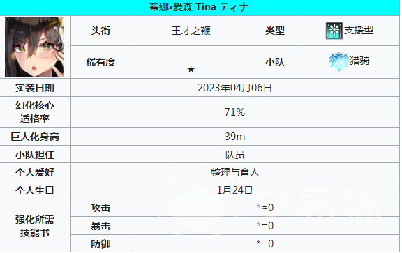 蒂娜:可以针对目标带来持续性的恢复效果,而且还可以得到装甲值,在每一个回合结束之后就会恢复对应的生命值。如果目标的生命值低于50%,就可以恢复100%的生命值。