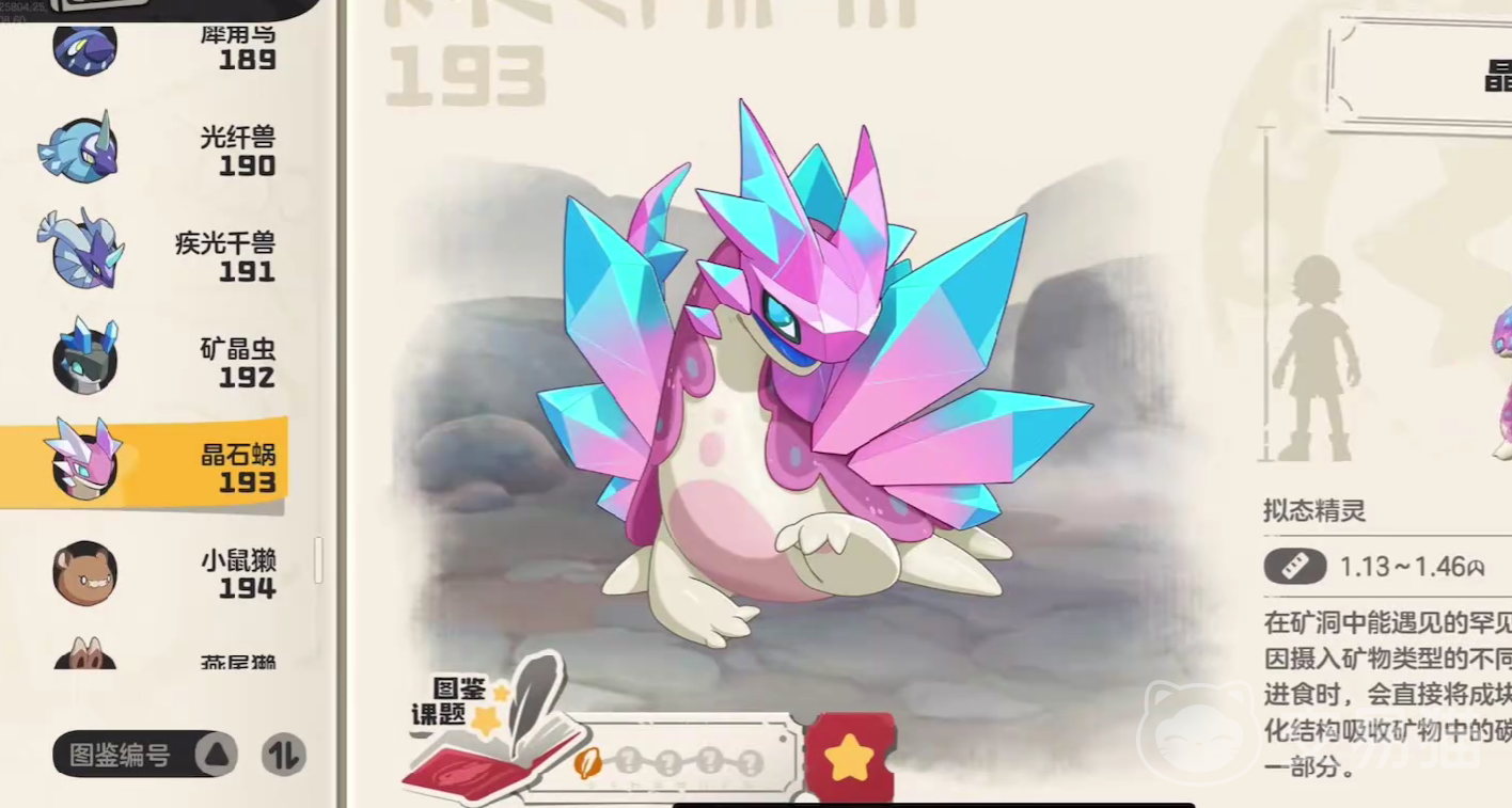 晶石蜗在游戏当中是一个非常特殊的精灵,由于它并不需要从基础特殊状态,进行四个阶段的升级,只需要玩家率先捕猎矿晶虫,随后进行一个阶段的升级,就能够进入到终极状态,但正是因为晶石蜗的进阶状态比较短,固然捕猎矿晶虫的难度也极大。
