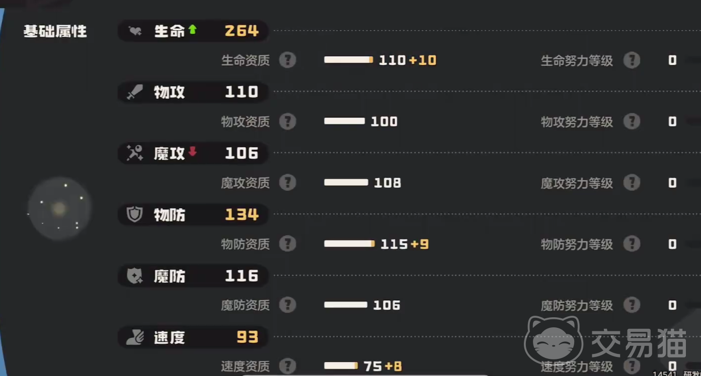 晶石蜗的基础生命数值为264点,具有110点的物理攻击能力,并且附带有134的物理防御数值,速度比较低,仅有93,但由于它的防御护甲特性比较强,在游戏内,经常会充当前排坦克角色。