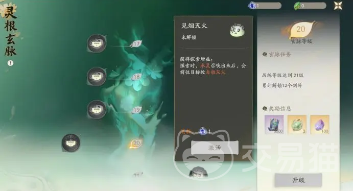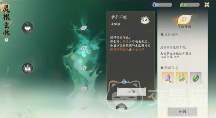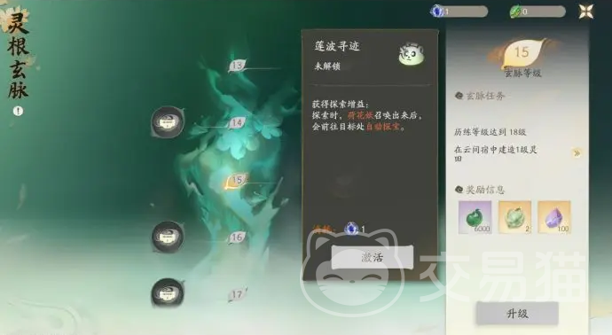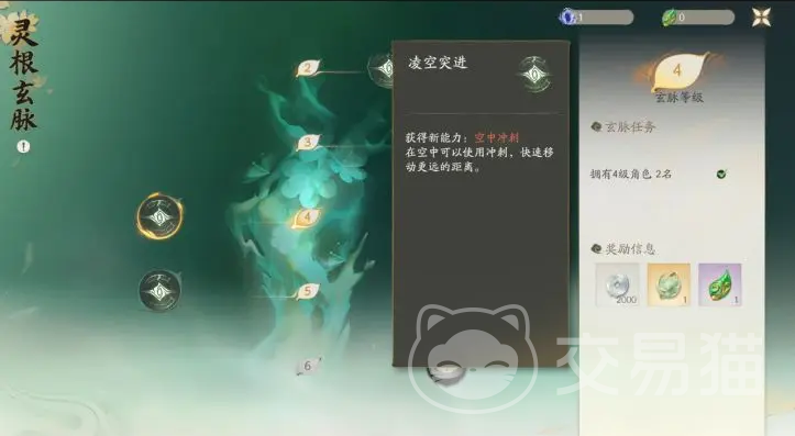 天赋系统也被称为灵根玄脉,玩家通过任务提升其等级,同时获得战斗增益、灵元等奖励。灵根玄脉共有六十等级,玩家每晋升一级天赋,直接获得一个增益效果,比如化灵、御物、凌空突进等。