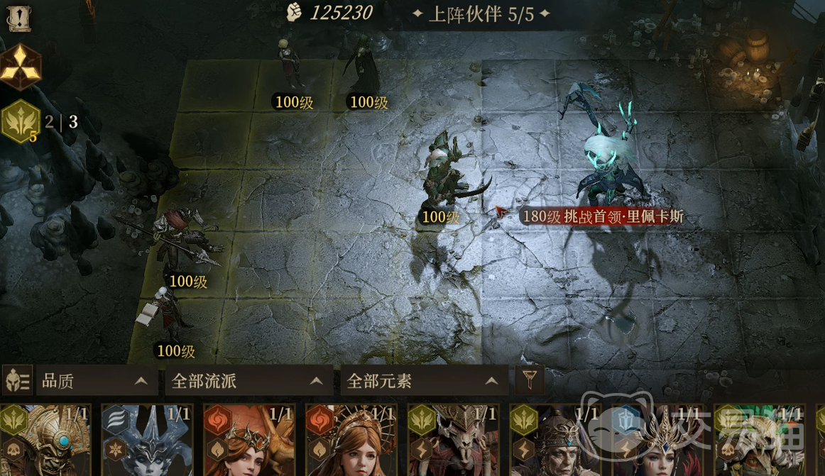 里面还有许许多多的英雄,可以根据属性、派系、定位进行划分,需要合理搭配5位英雄来构建阵容,挑战boss。英雄的选择与站位是在战斗开始前选定好的,但可以设置技能的释放顺序,或者手动释放。