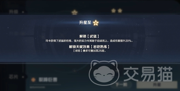而玛卡升星则需要消耗同名的玛卡,最高能够升级至5星,每次成功升星都会解锁新的天赋及技能,一星和二星的时候需要消耗一个同名玛卡,三星和四星则需要消耗两个同名玛卡,到了五星就需要消耗三个同名玛卡了,玛卡的洗炼需要用到玛卡洗炼原件这个道具,而增加生产资源的效果,像资深员工、迎势而上等增加工作收益的词条在洗炼时是不错的选择。