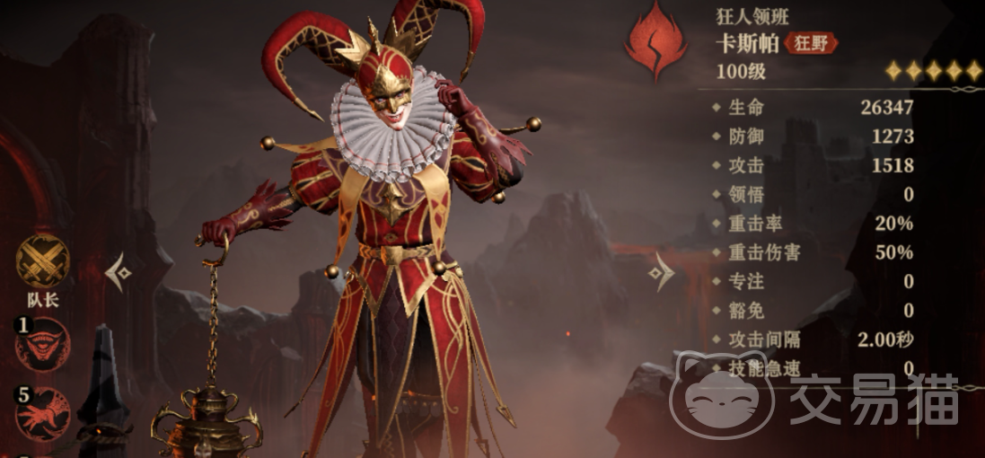 单体输出角色,配合狂野队友后可以发挥出极大的潜力。他的队长技在所有战斗中都能使用,虽然PVP中较少遇到,但在PVE中作为狂野系的打手是绝对没问题。如果抽到卡斯帕,可以考虑练起来,他在狂野队中的表现非常出色。