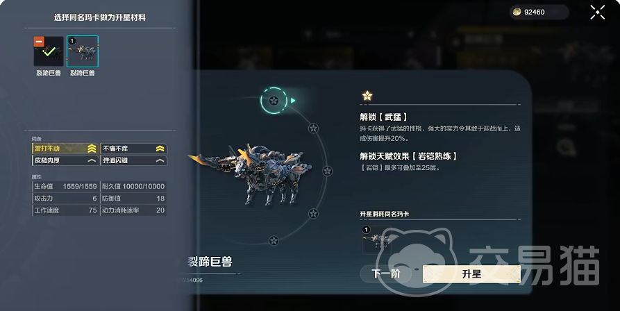 而升星需要消耗同种类的玛卡,添加材料的时候,可以查看作为材料的玛卡词条和属性等信息,橙色玛卡出生出生自带的词条几乎都是一样的,对橙色品质升星时就不用过分挑剔,蓝色紫色品质不同,升星之前还是要挑品质好一些的,这样后续可省不少的洗练材料,升星后就能查看对应效果。