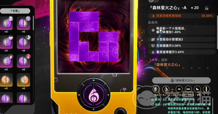 这时上半部分还会有空余的小方块,也要找到对应的方块填补起来,但是这个填补并不是随意的,要根据驱动的类型来选择正确的。不管是卡带还是驱动块,刷出来的时候副属性词条就已经固定了。驱动块的养成比较简单,刷出来好用的直接升级,而卡带的随机性会比较大,而且卡带的主属性会变,它的副属性当中最下面两条不要去刷,上面两条则需要去刷,每个卡带和驱动块对应的升级材料都是不同的。卡带和驱动块都有两种不同途径可获取,一种是消耗体力刷对应副本,另一种就是消耗游戏货币“甲硬币”直接在商店中购买。