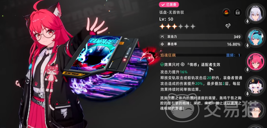 其实就是指武器,角色星级下面就会显示“适配弧盘”的字样,每个角色的适配弧盘是不同的,例如主角是“本能”,薄荷是“认知”,可以理解成角色的属性,不同属性就需要搭配不同的武器。弧盘除了有基本的属性之外,还拥有一个弧盘效果,比方说“无首铁驭”,武器效果只对情感属性的适配者才能生效。弧盘效果除了一些伤害的体现之外,还会对大世界有影响,例如“日蚀”的弧盘就需要做隐藏任务才能获得,日蚀能改变天气效果。