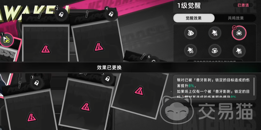 就是角色的命座,命座效果是可以自选的,以狼哥为例,抽出来是一命角色,觉醒效果却有6个,点击头像上方的圆圈,就可以选择想要的命座,之后完成变更,除了自选之外,抽到了3命6命之后,就会有额外的两个命座效果可以触发。
