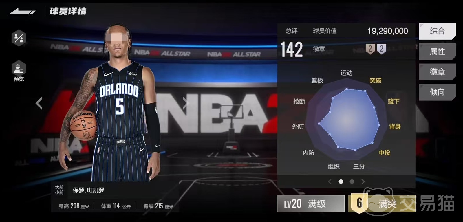 徽章方面,游戏对于年轻球员给的比较少,班凯罗也只有两铜两银,包括铜品质运球好手和无畏终结者,以及银品质对抗冲框和弹跳大师。不过这四枚徽章和自身模型以及属性贴合的非常好,能够将优势再次提升。在动作包方面,实战中的班凯罗会有略微顿挫感,手感上比较重,需要多熟悉几场后才能够适应。