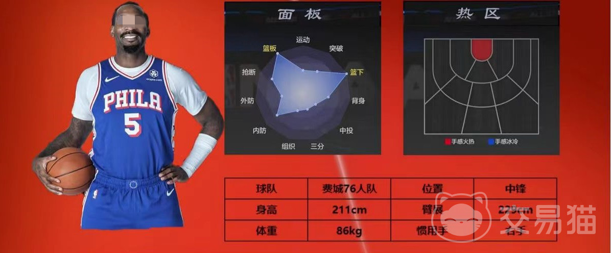 在篮板方面,进攻篮板162,防守篮板165,这两项篮板属性几乎拉满,再配合上自身所具有的卡位怪兽徽章,在篮板争夺的时候也能占尽优势。虽然另一项相关属性内线防守只有116,但是利用自身的超长臂展,依然可以进行有效的护框。得分能力方面,自然是以扣篮为主,原地灌篮157,突破扣篮133,在解锁了庄神篮下吸扣能力,配合上两个终结徽章,对于新入手球员来说,绝对是顶级的街头硬核c,也是非常令人放心的上分人选。