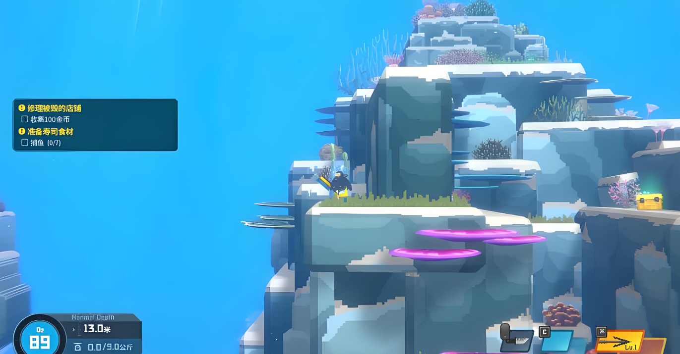 潜水员戴夫游戏需要各位玩家扮演戴夫,白天在深海中探索,收集各种海洋生物、寻找宝藏、营救其他遇难的潜水员,完成游戏中的任务;晚上在自己的寿司店出售白天收获到的渔品,并用赚来的金币升级自己的武器和小店,游戏玩法丰富,增加了游戏的可玩性,接下来我们来看看游戏的武器要怎么升级吧。