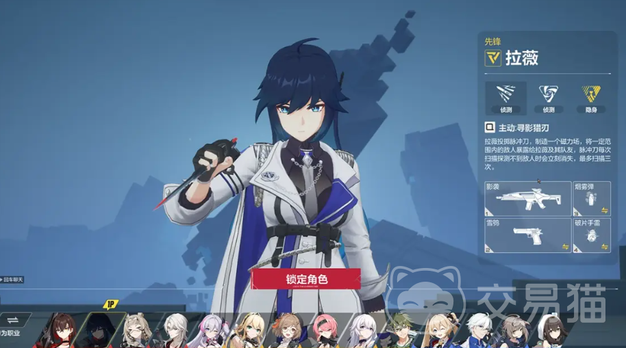拉薇这个角色作为整个队伍当中的先锋所在,主武器是隐形,是一种轻型的武器,后坐力特别的小,虽然说拉薇的主武器伤害性特别的低,但是他的主动技能特别的重要,所以他在整个队伍当中地位是比较高的,而玩家选择这个角色的时候,要选择合理的搭配烟雾弹等等道具。