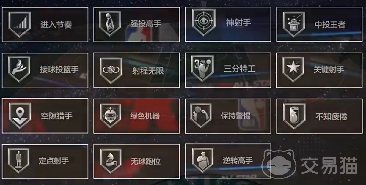 徽章方面的话,我们可以使用进入节奏。投篮的次数变多之后,那就可以逐渐的提升投篮的命中率。如此让他在作为小前锋时,不仅能够防御好,也可以及时接住队友的球并投篮,然后也可以使用三分特工,如此就能增加3分球的投射命中率。