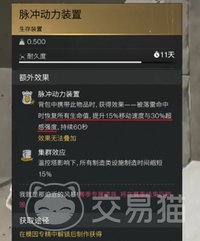 以上就是对七日世界脉冲动力装置介绍,《七日世界》中的脉冲动力装置是一款性能不错的科技装备。不仅能在关键时刻为玩家恢复生命值,还能显著提升速度和感知能力。
