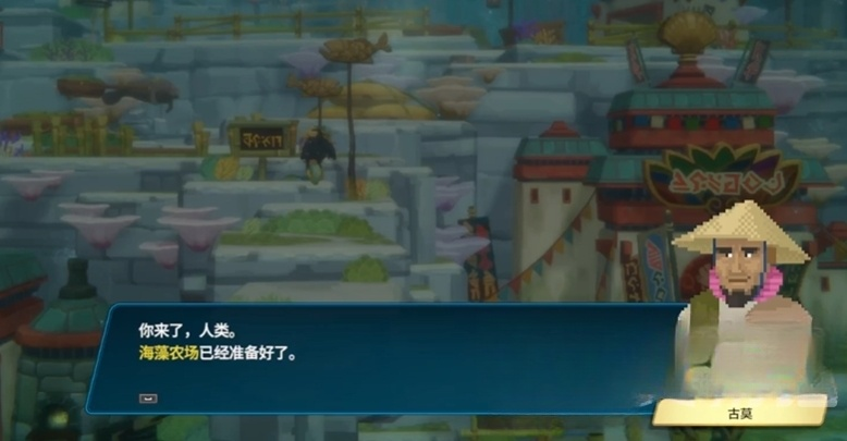 首先,玩家需前往鲛人村的最左边的种子商店,与店主交谈。店主会给出一个支线任务,这个任务是解锁海藻农场的第一步。任务的后续指引会将玩家引导至村庄中的另一个关键地点,即赌场左上角的区域,这里居住着一位农夫。农夫会提出想吃海带料理的需求,玩家可以事先准备好海带料理,或者直接在陆地上找班乔帮忙制作一份。