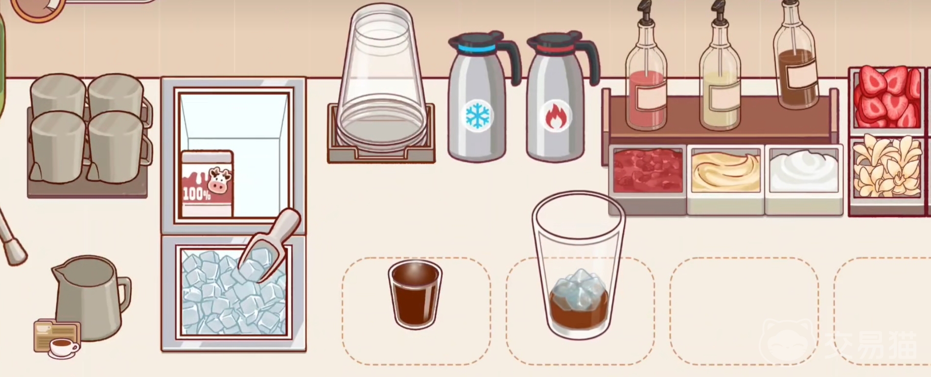 游戏过程中玩家也将不断地获得新的咖啡配方和新的可用材料,每种材料都有特定的成本售价,若玩家过于浪费,很可能会产生大量的成本并导致当天的盈利为负数。此外,各位还能通过盈利获得的金钱,来解锁和升级自己的咖啡制作设备,让自己在为客人调配咖啡时能更得心应手。