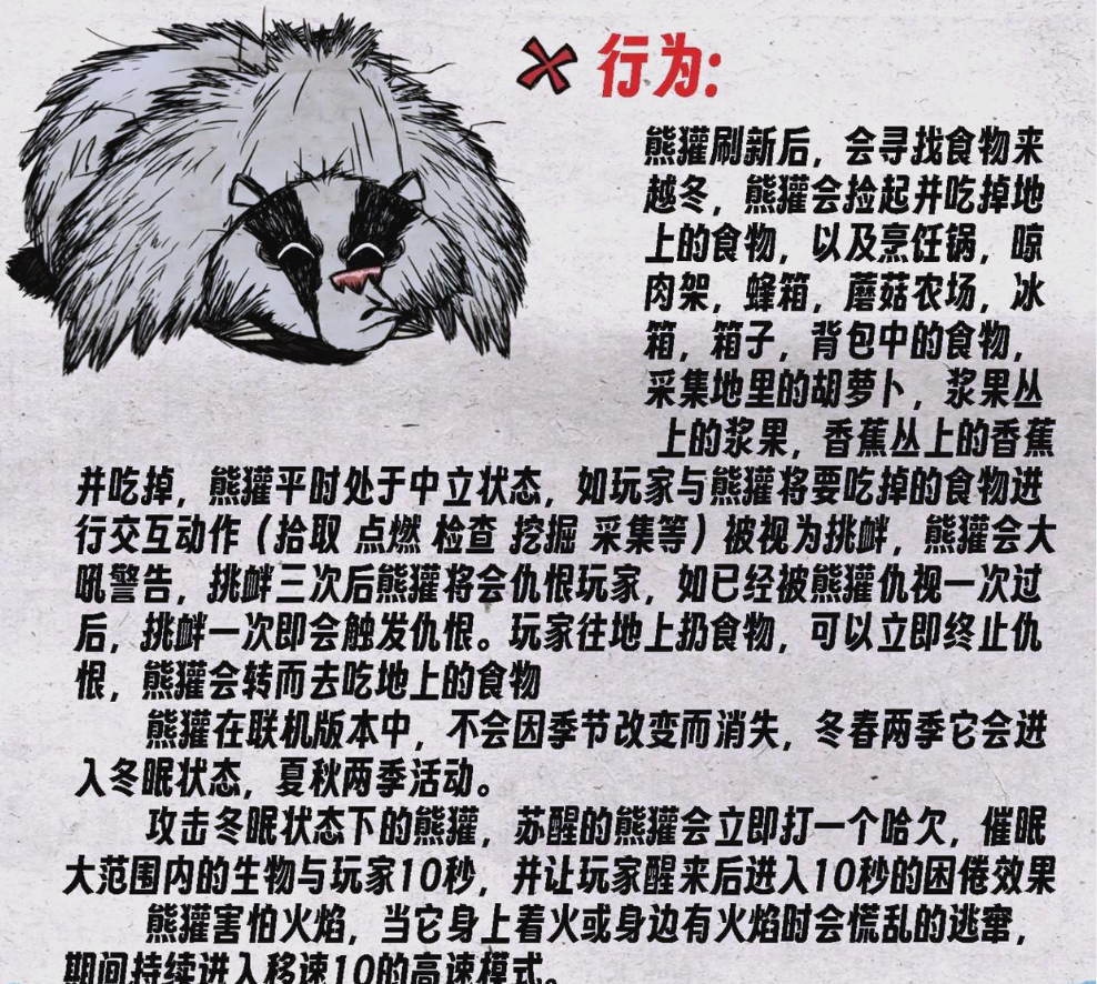 在饥荒联机版这款游戏当中也会涉及到一些boss,其中秋季boss又被众多的玩家称之为熊大,而它其实是熊獾,玩家想要攻打他的时候,也需要注意方法,下面就简单分享饥荒联机版秋季boss攻略方面的问题。毕竟这个boss如果说能够顺利的攻打完成的话,玩家将会获得很多奖励。