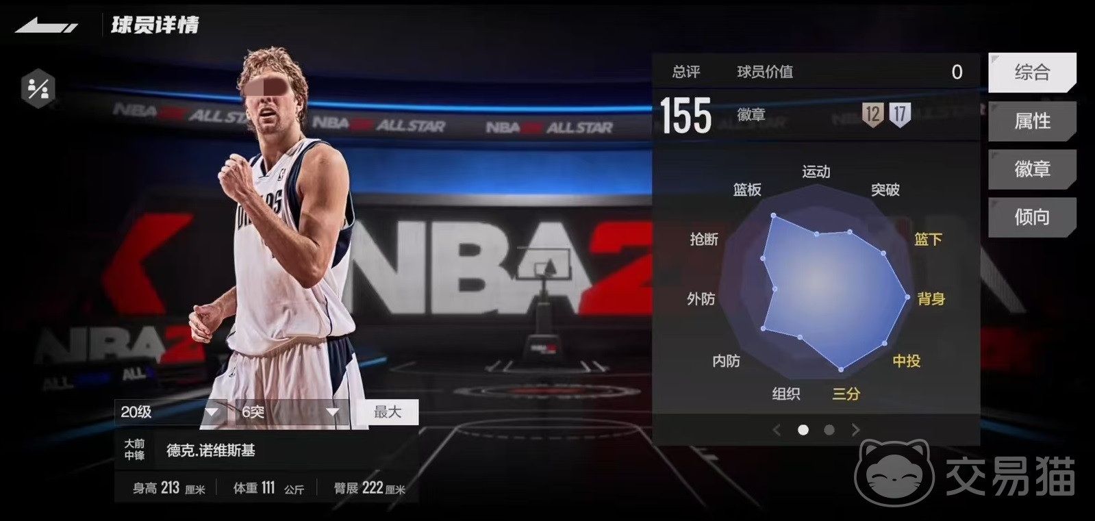 美职篮全明星德克诺维斯基怎么样 德克诺维斯基属性和徽章介绍