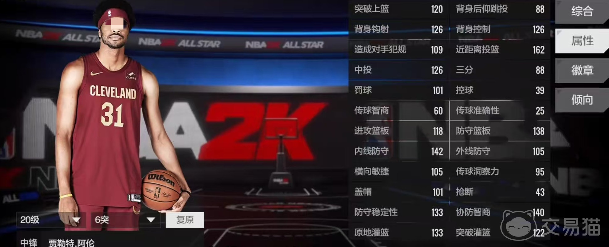 其他属性方面,原地灌篮133,突破灌篮122,弹跳120,力量131,这几个属性综合起来看,已经是中锋中不错的范围数值了。关键是105的横向敏捷和112的速度,将这名球员的协防能力提升了一个档次。还有一个比较关键的属性,那就是体力,贾勒特阿伦的体力150,这样的体力在场上就有了更多的发挥空间。