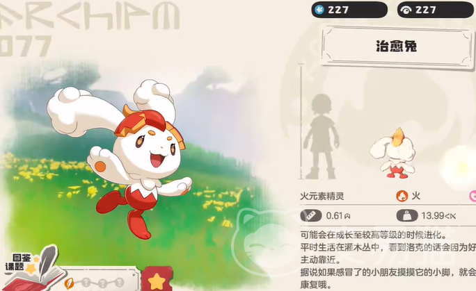 治愈兔是一个萌态十足的火属性精灵,在地图上较为常见,刷新点多,不会主动攻击玩家,自带特性“仁心”,队伍中每有一个受伤的精灵,可提升自身攻击力,还自带高输出技能炎枪,整体强度不错,适合与水系、土系精灵组队,利用属性互补,比如和圣水守护、玄武等搭配,水系、土系精灵可以吸引部分针对火属性的攻击,为治愈兔创造输出环境,同时治愈兔也能利用特性和技能进行输出和辅助。