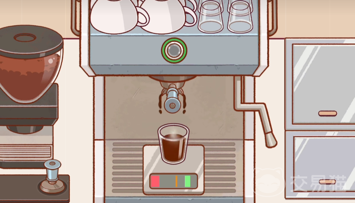 接着再选择点击绿色的按钮,可以直接启动整部机器了。然后下面会有一个进度条,首先会从红色开始逐渐上升,然后黄色的线条即将抵达绿色的区域时,我们再按一下按钮即可停下。之后就会制作出一份味道更加鲜美又浓度适中的咖啡了,且经过浓缩过后味道更好,不会让人感到生涩。