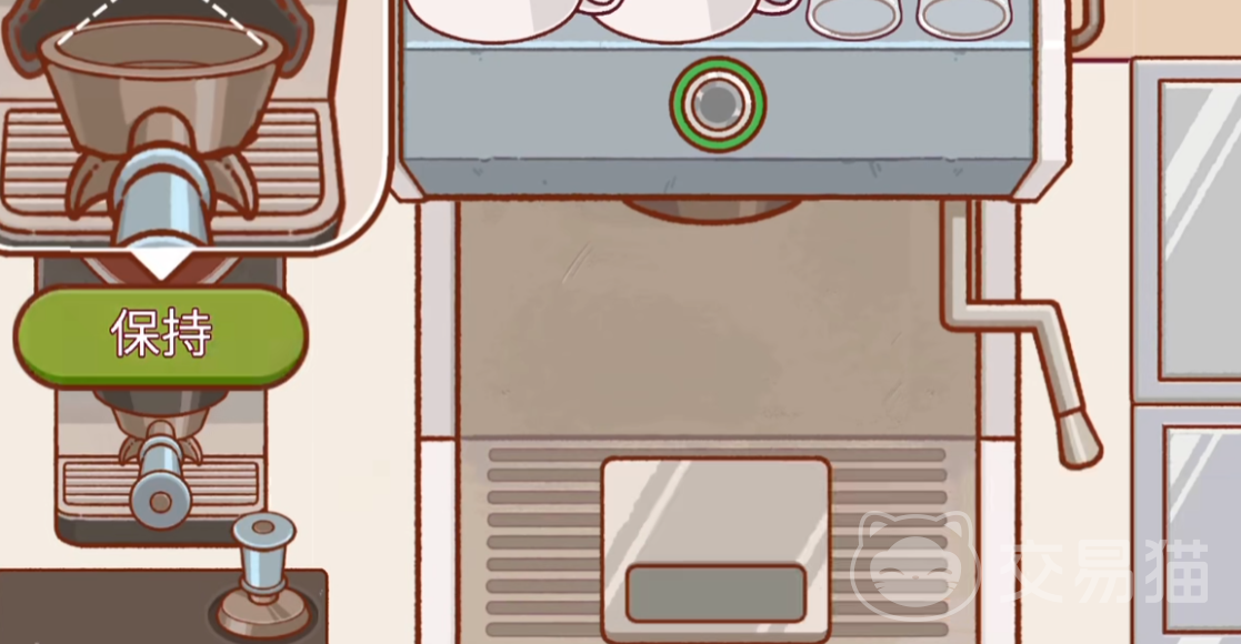 之后我们可以将手柄直接拖拽至磨豆机上面,在选择点击按钮。即可开始成功迅速的研磨我们所放进去的每一份豆子,然后静静的等待一段时间后就可以完成了。现在就会继续压一下,成为饼状,之后再将手柄拖拽回咖啡机上面。