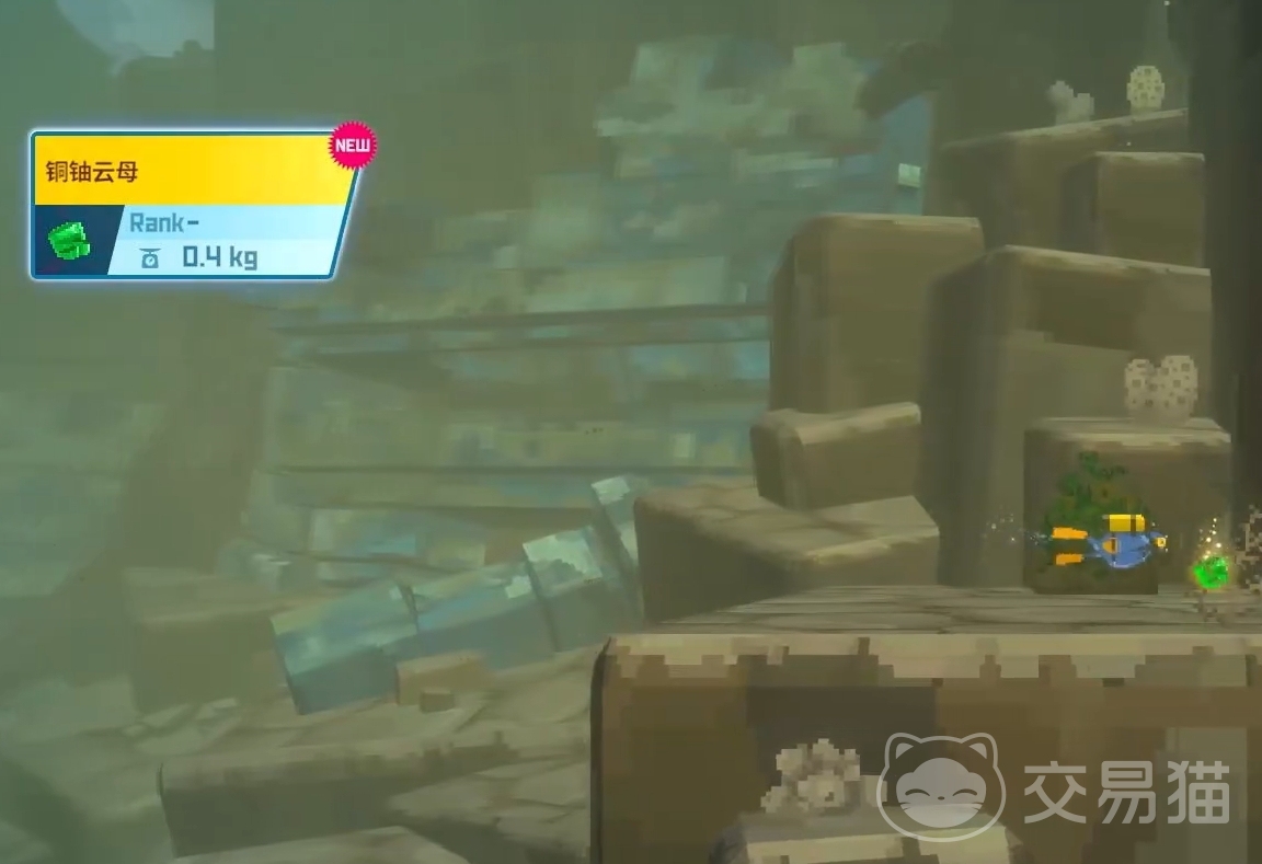 大伙可先前往冰河区域,一路下潜来直到自己来到三个控制室开关所在的位置,也就是邓氏鱼的刷新点处,铜铀云母矿就控制室最右边的台阶上,各位紧贴着控制室的地面一路游过去,就能发现它的踪迹。它未被采集会自带高亮绿色并冒着诡异黑光的特效,完成采集后颜色会变深。