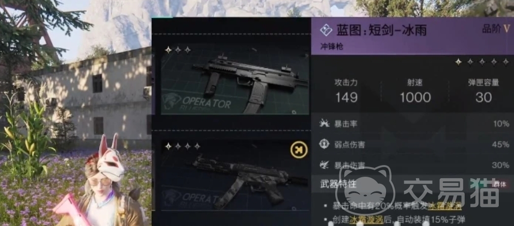 冰雨冲锋枪具有138的攻击力,射速可达1000,弹夹容量为30,提供30%的攻击速度提升和额外破盾伤害,非常适合于快速战斗和击破敌方护盾。在对付防御力强大的敌人时特别有效,可以迅速摧毁敌人的护盾,从而造成大量伤害,然而,由于其射速极快,弹药消耗也相应增加,玩家需注意弹药管理。