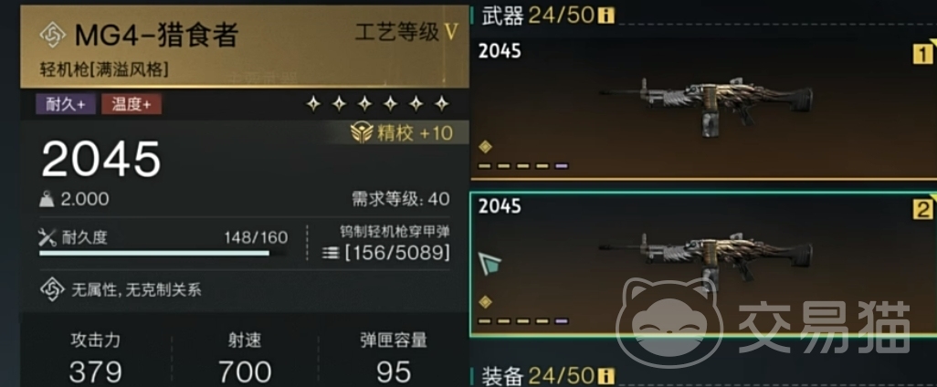 猎食者轻机枪在前期即可获得,攻击力为32,射速700,弹容量75,在击中敌人时有40%几率触发快枪手特性,提升攻速,并在叠加5层后获得0.5秒内子弹无限的效果。此外,持续攻击同一目标会逐渐增加伤害,最多可达2%。