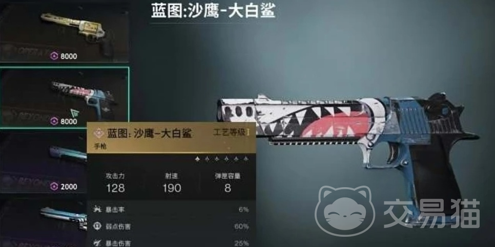大白鲨手枪在混合伤害环境中表现非常出色,伤害值达到599,射速为190,容量为8发,暴击率和暴击伤害分别为32.5%和60%。这把手枪不仅伤害高,而且在暴击方面也有出色的表现,是当前环境中非常强大的武器。无论是近距离的快速击杀,还是中距离的精准打击,大白鲨手枪都能胜任。