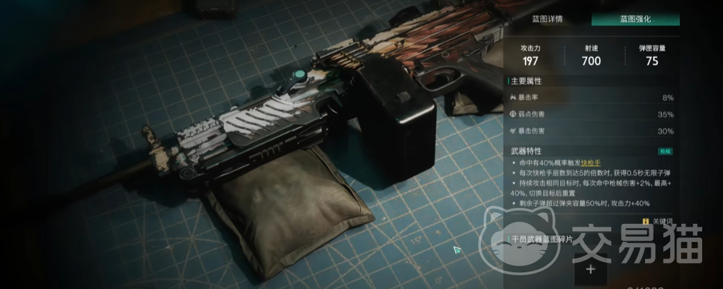 而如果后续加上了全面的配件,射击速度能够达到700,射击速度非常之快,并且短时间能发射出多枚子弹,使用起来手感非常的不错,伤害也非常的充足。通过无限子弹的叠加,就能对敌人造成超高的损伤,非常强大。