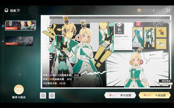 时装卡池同样也设定了保底,在抽取一定次数后,有机会获取高品质甚至传说级别时装,保底的设置其实是降低了玩家伙伴抽取稀有时装的难度。大家在抽卡时,也需要进行合理的规划,根据卡池的角色,保底机制,以及自身需求情况来决定是否抽,抽多少。
