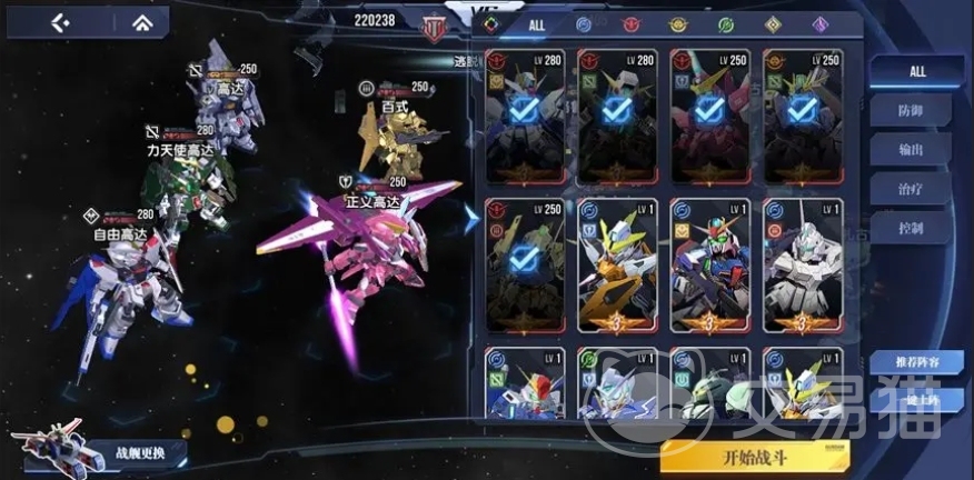 通过神经电极阵列增强驾驶员的战斗意志,将GN再生矩阵的能量转换效率提升70%,配合技能1的能量回收系统可实现每秒15%最大耐久的再生速率,该机制在天人组织的模拟对抗中,使力天使在劣势战局下的反杀率提高至68%,推荐阵容是符合通用型机体燃烧队的需求,这个阵容个的逻辑基于力天使的多维支援能力构建,其中天帝高达作为近战核心,粒子燃烧效果可与力天使的恢复形成持续伤害,正义高达的力场提供战术屏障,与力天使的防护盾协同构建多层防御体系,自由高达的高机动性负责战场割裂,配合百式的浮游炮阵列形成交叉火力网。
