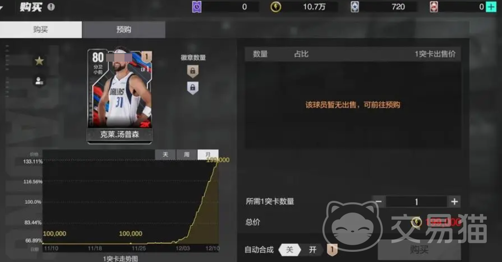 自带14枚铜徽章和3枚银徽章,搭配恰到好处。2突解锁“死亡缠绕”徽章,提升外线防守;3突强化中投,4突再提升三分远投能力,这时候的克莱才是完全体。4突的市场价约200万合同费,低段位街球和王朝模式中已经能游刃有余。5突彻底蜕变,解锁全部徽章,三分投射更具威慑力,合同费累计约360万。到了6突阶段,三枚铜徽章进阶为银徽章,三分能力再次飞跃,成为对手的梦魇,不过完全体的代价不菲,稳健突破需600万合同费。