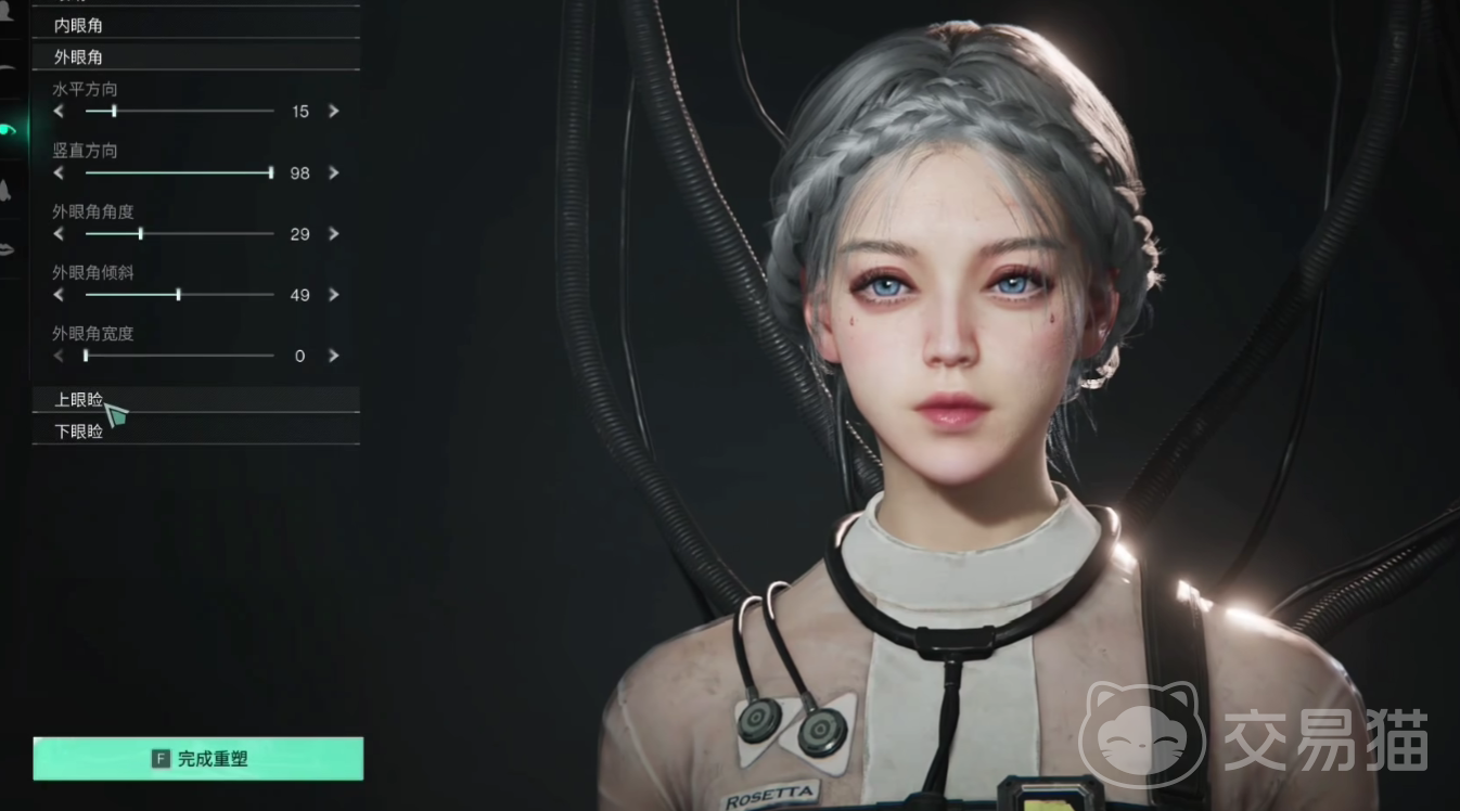 机械义眼的颜色调整为蓝色即可,在面部参数的设置上面,玩家需要对上眼脸的参数进行调整,内眼角水平方向改为15,垂直方向改为98,外眼角的角度改为29,外眼角倾斜温度改为49,该捏脸的面部代码为:3CPO-88R2-CYBER-2099,玩家输入后就能够直接装配了。