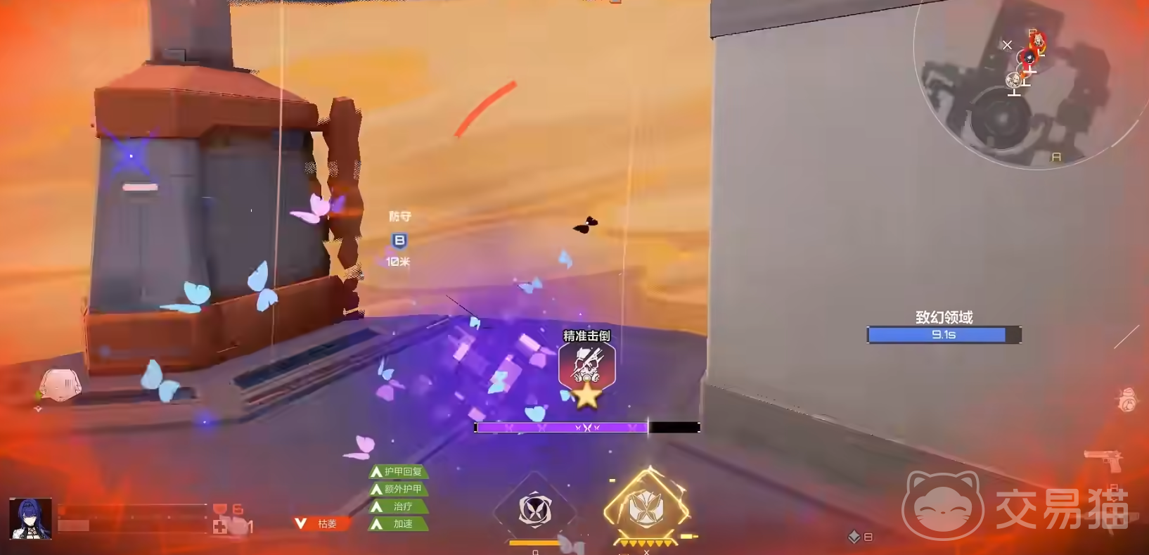 再讲讲她震撼全场的终极大招 “幻梦化蝶” 。以自身为中心释放致幻领域,当领域内的敌方单位受到致命伤害时,她会化身为蝴蝶,短时间后重塑身体继续战斗,而且变成蝴蝶能手动取消。在领域外的敌方虽然无视重塑规则,但只有在被攻击时才能看见芙拉薇娅,利用好这个特性,能让敌人捉摸不透你的行踪。