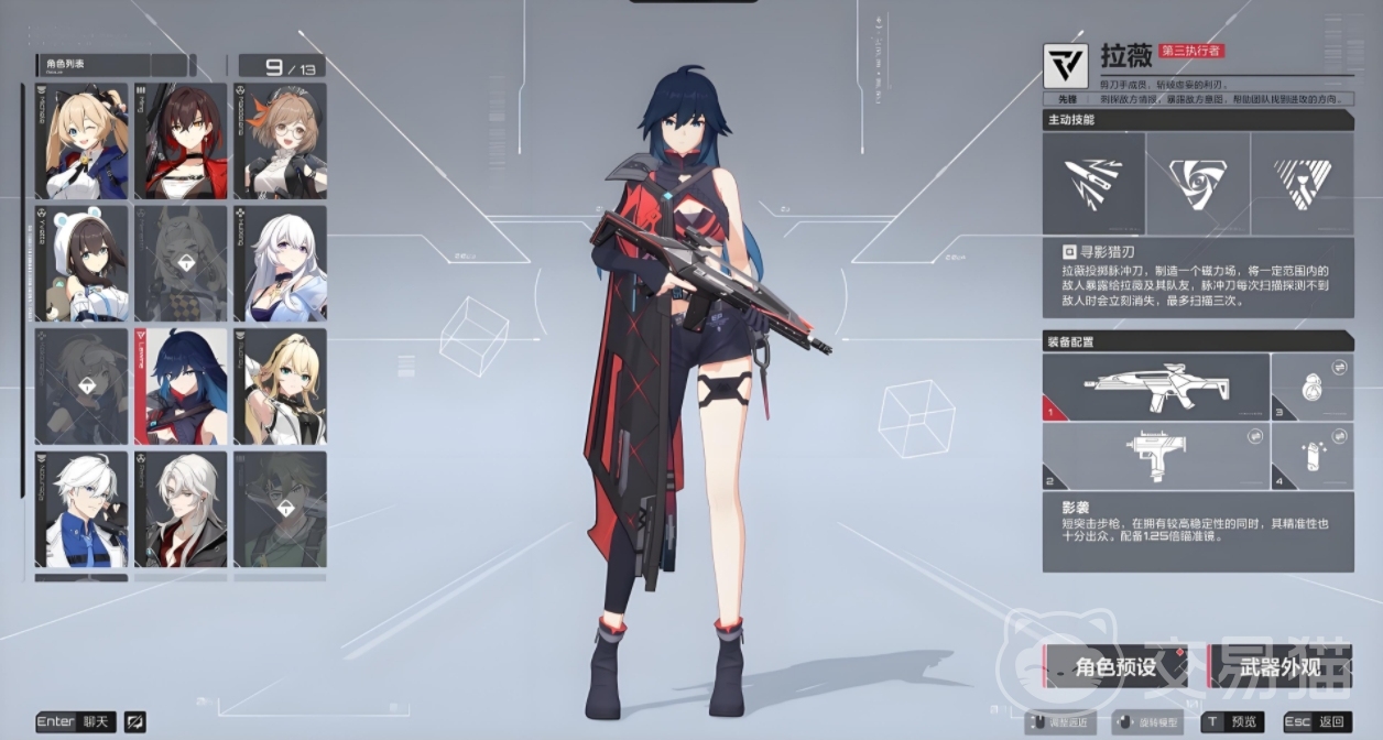 主武器影袭,是短突击步枪型,拥有较高的稳定性与精准性,配备1.25x倍瞄准镜。它的原型是由美国AEDEC研发的轻型突击步枪XM8。XM8在设计上注重轻便性和稳定性,而影袭在继承这些优点的同时,也在游戏中展现出了独特的魅力。