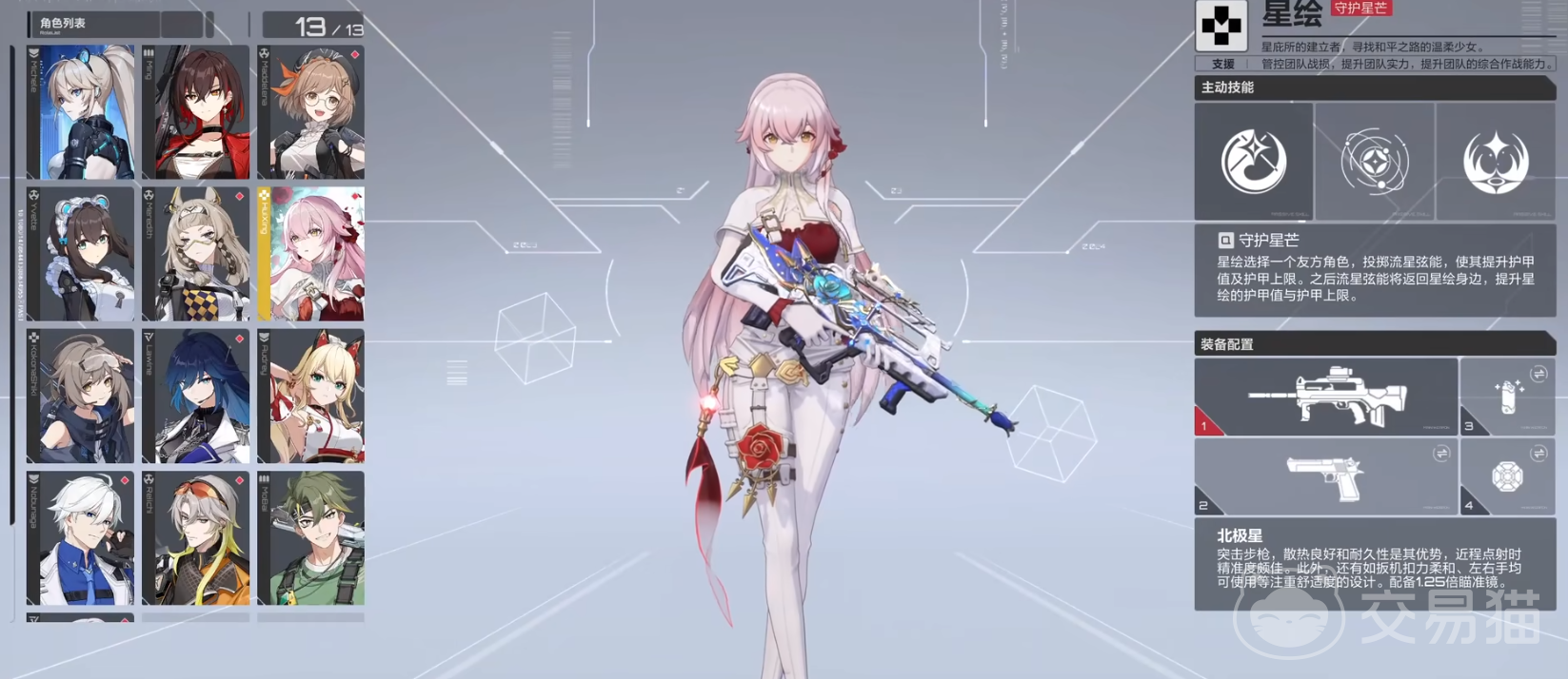 主武器北极星,原型是法玛斯FAMAS突击步枪。它是法国的一款无托式突击步枪,以其可靠性和精准度在世界枪械领域中占据一席之地。在《卡拉彼丘》中,这把法玛斯F1经过了艺术化的重塑,与星绘的角色定位以及游戏整体风格完美融合。散热良好和耐久性是其优势,近程点射时精准度颇佳,配备1.25倍瞄准镜。